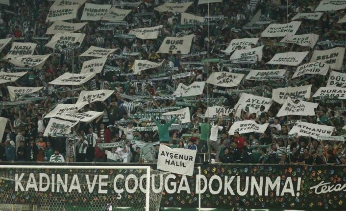Bursaspor taraftarları öldürülen kadınların isimleri yazılı pankart açtı