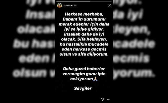 Buse Terim Bahçekapılı, koronavirüs tedavisi devam eden babası Fatih Terim’in sağlık durumunun iyiye gittiğini açıkladı.