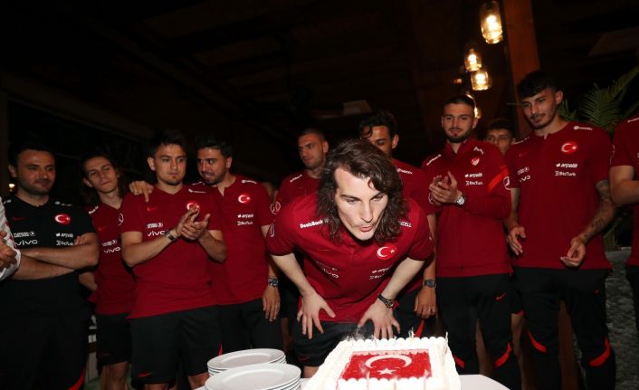Milli futbolcu Çağlar Söyüncü’nün 24. yaş günü, ay-yıldızlıların kamp yaptığı Antalya’daki Regnum Carya Oteli’nde kutlandı.