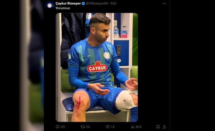 Trendyol Süper Lig’in 16. Haftasında sahasında Konyaspor’u ağırlayan Çaykur Rizespor, ikinci yarı başlamadan Rachid Ghezzal’ın ayağından kan akan fotoğrafı ‘Yorumsuz’ ifadesi ile paylaştı.