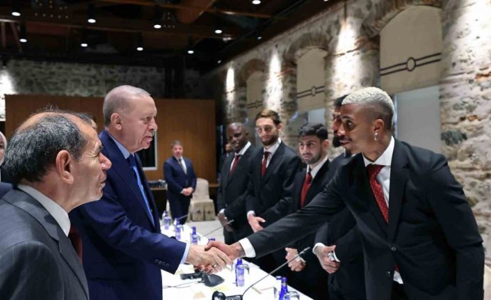 Cumhurbaşkanı Recep Tayyip Erdoğan, 2024-2025 sezonunda Trendyol Süper Lig’de ve Ziraat Türkiye Kupası’nda şampiyon olan Galatasaray’ın heyetini, Cumhurbaşkanlığı Dolmabahçe Çalışma Ofisi’nde kabul etti. Galatasaray Başkanı Dursun Özbek, yönetim kurulu üyeleri, Teknik Direktör Okan Buruk ve futbolcularla tek tek tokalaşan Cumhurbaşkanı Erdoğan, sarı-kırmızılıların şampiyonluklarını tebrik etti.