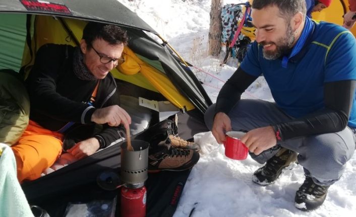 Dağcılar Palandöken’de kış kampında