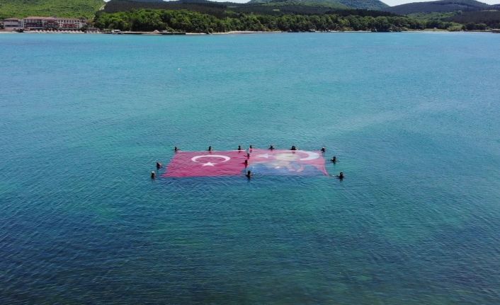 Kocaeli’nin Kandıra ilçesi denize salan dalış okulu üyeleri, Kerpe sahilinde deniz üstünde açtıkları dev Türk bayrağı ve Atatürk posteri ile 19 Mayıs Gençlik ve Spor Bayramı’nı kutladı.