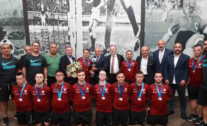 Başkan Mehmet Büyükeşi, altın madalya kazanan sporcuları çiçeklerle karşılayıp tek tek sarılarak tebrik etti. Oyuncuları alkışlayan Büyükekşi, "Bu çocuklar her şeyin en güzelini hak ediyorlar. Onların başarılarını kupayla taçlandırmaları bizleri çok mutlu etti. Hepsini canı gönülden kutluyorum. Azimleriyle, kararlılıklarıyla, mücadeleleriyle toplumda diğer özel çocuklara rol model oluyorlar. Türkiye Futbol Federasyonu olarak her zaman engelli futbolunun yanındayız, olmaya da devam edeceğiz" diye konuştu.