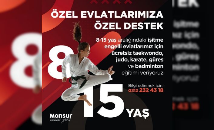 Ankara Büyükşehir Belediyesi EGO Spor Kulübü, 8-15 yaş aralığındaki işitme engelli çocuklara aralık ayından itibaren ücretsiz tekvando, judo, karate, güreş ve badminton eğitimi verecek.
