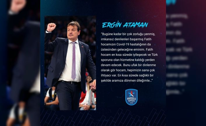 Anadolu Efes Başantrenörü Ergin Ataman, korona virüse yakalanan Galatasaray Teknik Direktörü Fatih Terim için geçmiş olsun mesajı yayımladı.