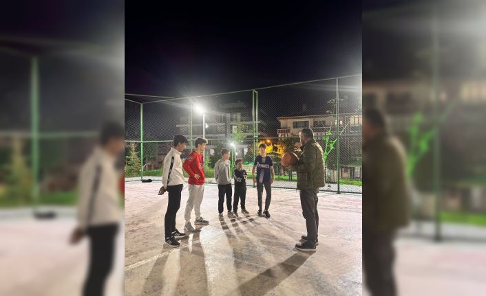 İlçeye kazandırılan basket sahasında çocuklarla kıyasıya serbest basket atışı turnuvası yapan Ertuğrul Çetin, basket atışlarını başaran ya da başaramayan tüm çocuklara çeşitli hediyeler verdi.