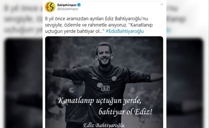 Eskişehirspor, 5 Eylül 2012 yılında kalp krizi geçirerek vefat eden Ediz Bahtiyaroğlu’nu unutmadı. Siyah-Kırmızılı camia sosyal medya hesabından, “Kanatlanıp uçtuğun yerde bahtiyar ol” notuyla bir video paylaştı.