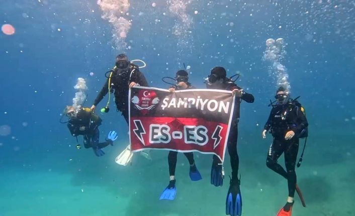 Eskişehirsporlu 7 dalgıçtan oluşan grup, İzmir’de denizde 26 metre derinlikte "Şampiyon ES-Es" yazılı pankartı açtı