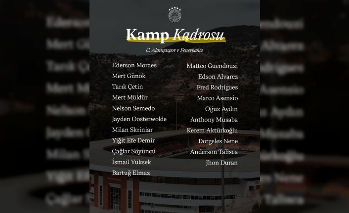 Trendyol Süper Lig’in 18. haftasında Corendon Alanyaspor’a konuk olacak Fenerbahçe’de kamp kadrosu belli oldu. Sarı-lacivertlilerde Archie Brown, Levent Mercan, Sebastian Szymanski kafilede yer almadı.