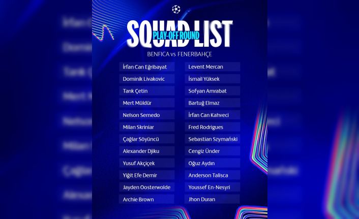 Fenerbahçe’nin, UEFA Şampiyonlar Ligi Play-Off Turu rövanş maçında Portekiz temsilcisi Benfica ile yarın deplasmanda oynayacağı maçın kamp kadrosu belli oldu.