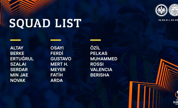 Fenerbahçe’nin UEFA Avrupa Ligi D Grubu ilk maçında deplasmanda oynayacağı Eintracht Frankfurt karşılaşmasının kamp kadrosu belli oldu. Sakatlığı geçen Yunan futbolcu Dimitris Pelkas da kadroda yer aldı.