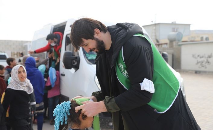 Milli basketbolcu Furkan Aldemir, Kilis’in karşısındaki Suriye’nin Azez kentinde ihtiyaç sahibi ailelere yardım ulaştırdı.