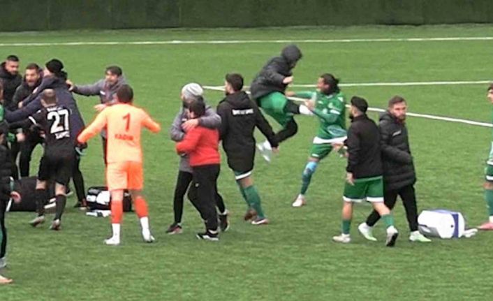 Rize’de oynanan Veliköyspor-Ünye 1957 Spor karşılaşmasında kavga çıkınca ortaya da spora yakışmayan görüntüler çıktı.