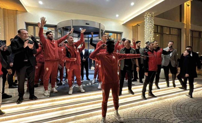Kafilenin otele girmesinin ardından girişte bekleyerek slogan atan taraftarlar, takımı dışarı çağırdı. Bir süre sonra otelin önüne inen sarı-kırmızılı futbolcular ise taraftarları selamlayarak üçlü çektirdi.