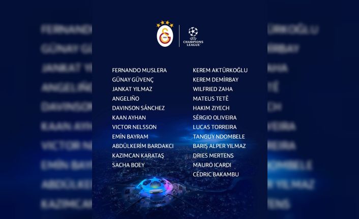 "Fernando Muslera, Günay Güvenç, Jankat Yılmaz, Angelino, Davinson Sanchez, Kaan Ayhan, Victor Nelsson, Emin Bayram, Abdülkerim Bardakcı, Kazımcan Karataş, Sacha Boey, Kerem Aktürkoğlu, Kerem Demirbay, Wilfried Zaha, Mateus Tete, Hakim Ziyech, Sergio Oliveira, Lucas Torreira, Tanguy Ndombele, Barış Alper Yılmaz, Dries Mertens, Mauro Icardi, Cedric Bakambu."