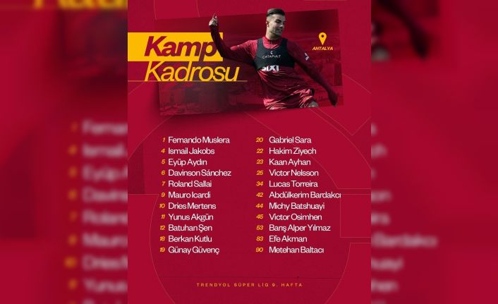 "Fernando Muslera, Ismail Jakobs, Eyüp Aydın, Davinson Sanchez, Roland Sallai, Mauro Icardi, Dries Mertens, Yunus Akgün, Batuhan Şen, Berkan Kutlu, Günay Güvenç, Gabriel Sara, Hakim Ziyech, Kaan Ayhan, Victor Nelsson, Lucas Torreira, Abdülkerim Bardakcı, Michy Batshuayi, Victor Osimhen, Barış Alper Yılmaz, Efe Akman, Metehan Baltacı."