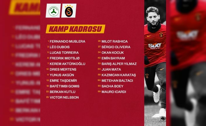 "Fernando Muslera, Leo Dubois, Lucas Torreira, Fredrik Midtsjö, Kerem Aktürkoğlu, Dries Mertens, Yunus Akgün, Emre Taşdemir, Bafetimbi Gomis, Berkan Kutlu, Victor Nelsson, Milot Rashica, Sergio Oliveira, Okan Kocuk, Emin Bayram, Barış Alper Yılmaz, Juan Mata, Kazımcan Karataş, Metehan Baltacı, Sacha Boey ve Mauro Icardi."