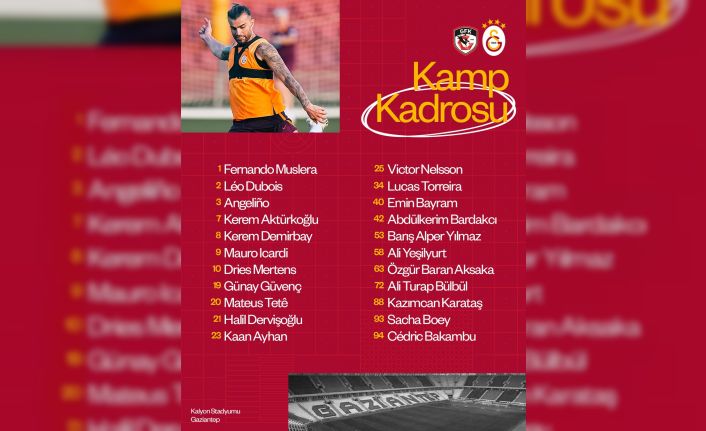 Trendyol Süper Lig’de yarın Gaziantep FK ile deplasmanda karşılaşacak olan Galatasaray’da bu maçın kamp kadrosu açıklandı.