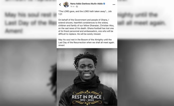Gana Devlet Başkanı Nana Akufo-Addo, depremde enkaz altında kalarak hayatını kaybeden Hatayspor’un Ganalı futbolcusu Christian Atsu için yayımladığı mesajda, "Gana futbolu, en iyi oyuncusundan ve yeri doldurulması zor olan elçilerinden birini kaybetti. Çok özlenecek" ifadelerini kullandı.