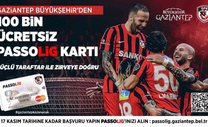 Gaziantep Büyükşehir Belediyesi Gençlik Hizmetleri ve Spor Daire Başkanlığı, gazi şehrin takımı Gaziantep Futbol Kulübü’nü (GFK) destekleyen futbolseverlere 100 bin Passolig kartı hediye edecek.