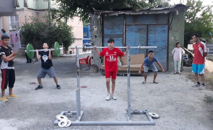 Mersin’in Tarsus ilçesinde geleceğin şampiyonları sokakta kendi imkanlarıyla spor yapıyorlar.