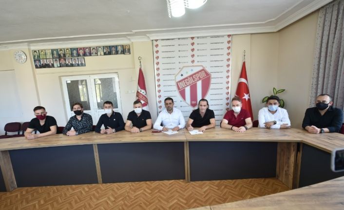 Kulüp tesislerinde düzenlenen imza töreninde konuşan Kulüp Başkanı Kani Ademoğlu, “İnegölspor yönetim kurulu olarak yeni sezon öncesi önceliğimiz mâlî disiplindi. İkincisi yapılanma üçüncüsü sportif başarıydı. Mâlî disiplinde 3 milyon 270 bin lira olarak aldığımız borcu şuan 500 bin liraya kadar düşürdük. Yani o disiplini sağladığımıza inanıyorum. Nasipse 2-3 hafta içerisinde geçmişe dayalı kulübün hiçbir lira borcu kalmamış olacak. Bu süreçte bizim yanımızda olan Belediye Başkanımız Alper Taban’a, Bursa Büyükşehir Belediye Başkanımız Alinur Aktaş’a, İnegöl’deki esnaflarımıza, iş adamlarımıza, sanayicilerimize bize destek olan herkese ayrı ayrı teşekkür ediyorum. İkincisi yapılanmaydı. Yapılanmayı da Galatasaray’dan olsun Bursaspor’dan olsun genç ve dinamik topçular alarak, alt yapımızdan takviyelerle ve geçmiş senelerde oynayan gençlerimizle beraber onu da başardığımıza inanıyorum. Üçüncüsü sportif başarıydı. Maalesef ilk 5 haftada aldığımız kötü neticeler sonucunda sportif başarıyı sağlayamadık. Sezon başı Osman Özdemir hocamızla başlamıştık. Ortak istişareler sonucu hocamızla ayrılma kararı aldık. Ben buradan Osman hocamıza İnegölspor’umuza vermiş olduğu hizmetlerden dolayı teşekkür ediyorum. Osman hocamızla ayrılma kararından sonra yönetim kurulu olarak, Cüneyt Biçer hocamız üzerinde karar kıldık. Cüneyt hocamız kendisini ispatlamış 3 senede 2 şampiyonluğu olan başarılı, genç ve dinamik bir hocamız. Kendisi ile sezon sonuna kadar anlaştık. Cüneyt hocamız şehrimize, camiamıza, İnegölspor’umuza hayırlı olsun” dedi.