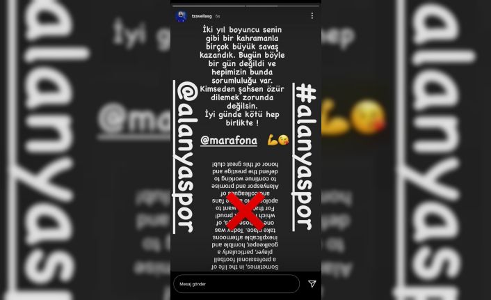 Süper Lig’in 33. haftasında deplasmanda Beşiktaş’a 3-0 mağlup olan Aytemiz Alanyaspor’da file bekçisi Jose Marafona, yediği goller nedeniyle sosyal medya hesabından paylaşım yaptı ve taraftarlardan özür diledi. Marafona’ya kaptan Tzavellas ve Davidson da yaptığı paylaşımla destek verdi.