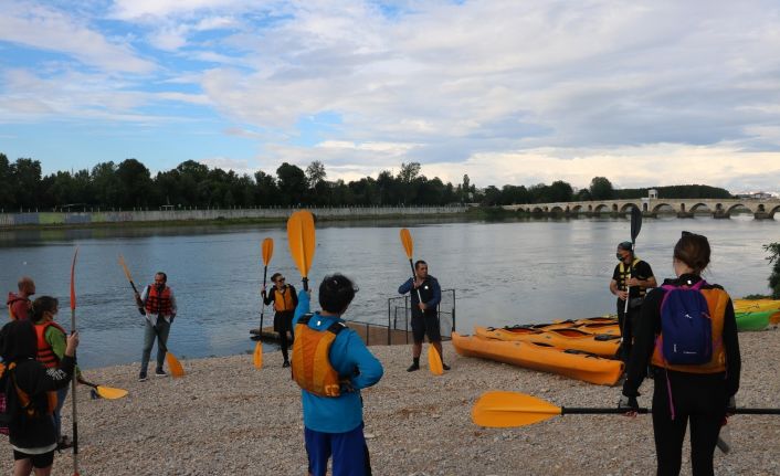 Edirne Doğa Sporları Kulübü (EDOSK) kano branşı sporcuları, kanolarını suya indirerek nehirde kürek çekti. Kano turuna Meriç Köprüsü yakınlarından başlayan sporcular, turu Süvari Köprüsü’nde tamamladı.