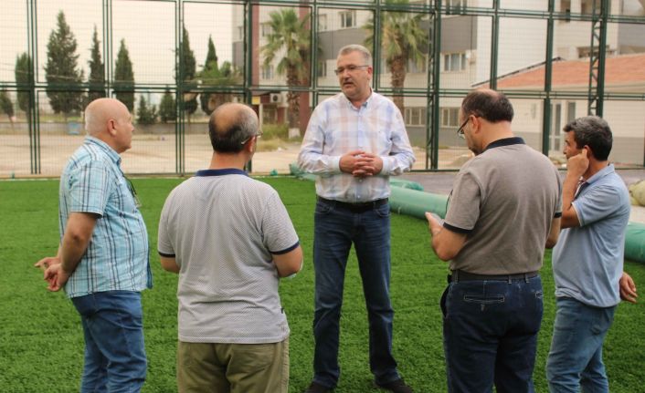 Karacabey Belediye Başkanı Ali Özkan, Teknik ve Endüstri Meslek Lisesi’nde yapımı süren hala sahayı ziyaret etti.