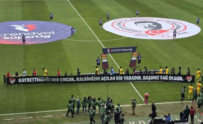 Trendyol Süper Lig’in 30. haftasında Kocaelispor, Göztepe’yi konuk ediyor. Müzik yayınının yapılmadığı stadyumda seremoniye iki takım futbolcuları "Kaybettiğimiz her çocuk kalbimizde açan bir yaradır. Başımız sağ olsun" yazılı pankartla çıktı ve yaşanan saldırılara tepki gösterdi.