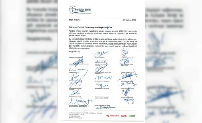 "Aşağıda imzası bulunan kulüplerimiz olarak yabancı sayısının 2021-2022 sezonunda sözleşme imzalama sınırlaması olmaksızın, esame listesinde 14 yabanı yer alabilecek şekilde devam etmesi,
