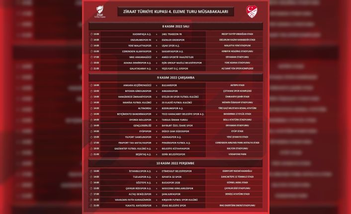 Ziraat Türkiye Kupası 4. Eleme Turu maçları programı şu şekilde: