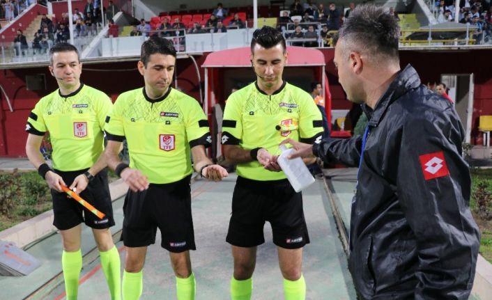 TFF 1. Lig’de oynanan Adana Demirspor-Akhisarspor maçı öncesi futbolcu, hakem ve teknik direktörlere el dezenfeksiyonu sıkıldı.