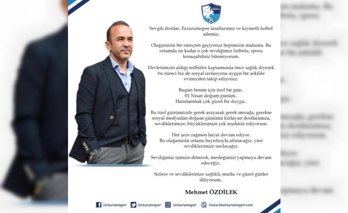 Erzurumspor Teknik Direktörü Mehmet Özdilek, doğum günü olması nedeniyle duygusal bir mesaj yayımladı.