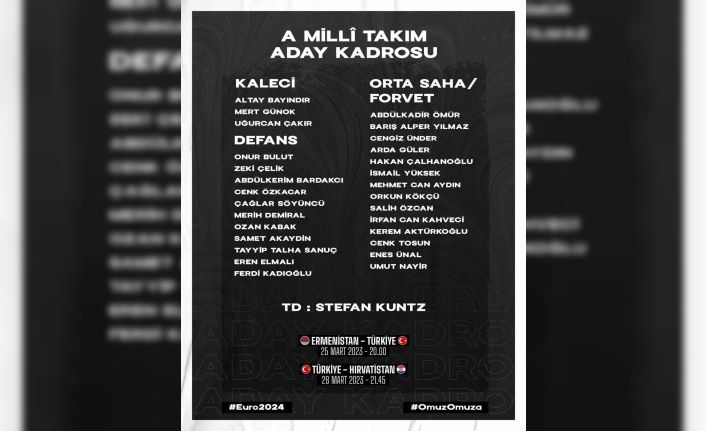 A Milli Futbol Takımı’nın, EURO 2024 Elemeleri’nde oynayacağı Ermenistan ve Hırvatistan maçlarının aday kadrosu belli oldu. Fenerbahçe, 6 oyuncuyla ay-yıldızlı takıma en fazla futbolcu gönderen takım olarak dikkat çekti. Sarı-lacivertlileri, 4 futbolcuyla Beşiktaş, 3 oyuncuyla da Galatasaray takip etti.