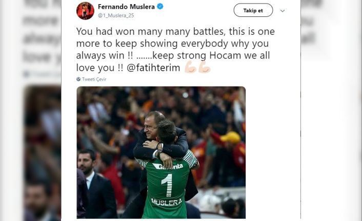 Galatasaray’ın kalecisi Fernando Muslera, korona virüse yakalanan teknik direktör Fatih Terim’e destek mesajı yayınladı.