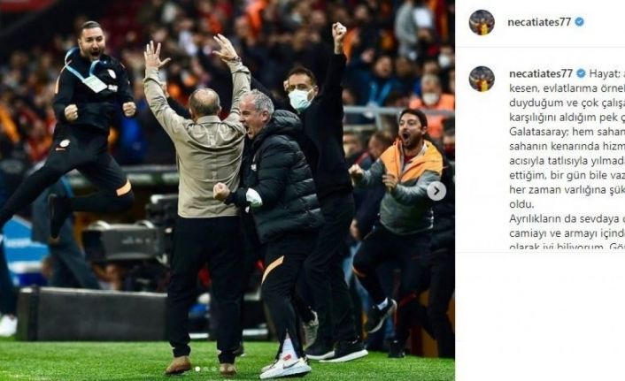 Galatasaray’da Fatih Terim ile yollarından ayrılmasının ardından yardımcı antrenör Necati Ateş de sarı-kırmızılılara veda etti. Ateş, sosyal medya hesabından yaptığı paylaşımda, "Hayat; ayağımı yerden kesen, evlatlarıma örnek olduğum, gurur duyduğum ve çok çalışarak, emeklerimin karşılığını aldığım pek çok sevinç yaşattı. Galatasaray; hem sahanın içinde hem de sahanın kenarında hizmet verdiğim, acısıyla tatlısıyla yılmadan mücadele ettiğim, bir gün bile vazgeçmediğim ve her zaman varlığına şükrettiğim bir sevda oldu. Ayrılıkların da sevdaya dahil olduğunu bu camiayı ve armayı içinde yaşamış biri olarak iyi biliyorum. Gönüllerimizin bir olduğu bu süreçte bana inanarak görev veren hocamız Fatih Terim başta olmak üzere herkese teşekkür ederim" ifadelerini kullandı.