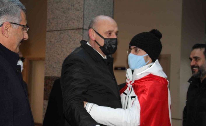 İlk kez olimpiyatlarda sürat pateni branşında Türkiye’yi temsil edecek olan Akar, sırtına bağladığı Türk Bayrağıyla havalimanından alkışlarla uçağa uğurlandı.