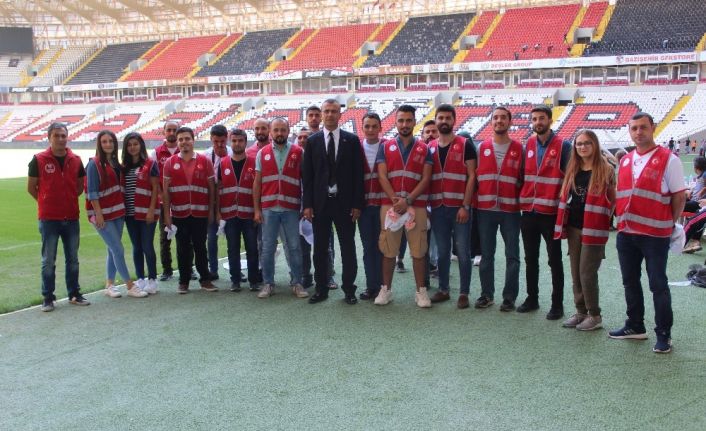 Gaziantep Gençlik Hizmetleri ve Spor İl Müdürlüğü bünyesindeki gönüllü gençler cumartesi günü oynanacak olan Gazişehir Gaziantep-Beşiktaş maçı öncesi Gaziantep Kalyon Stadı’nın koltuklarını temizledi.