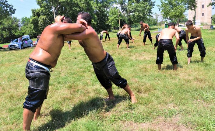 Korona virüs sürecinde evde antrenman yaparak bireysel performanslarını koruyan Edirneli pehlivanlar, 660. Tarihi Kırkpınar Yağlı Güreşleri’ne hazırlık için 35 derece sıcaklığa rağmen kispet bağlayıp çayıra çıktı.