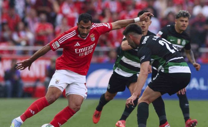 Portekiz’de şampiyonluk yarışındaki Benfica ile Sporting, Luz Stadı’nda karşı karşıya geldi. Benfica’da milli futbolcular Kerem Aktürkoğlu ve Orkun Kökçü derbiye ilk 11’de başladı. Konuk takım 4. dakikada Francisco Trincao ile 1-0 öne geçerken, ilk yarı da bu skorla sona erdi. 63. dakikada sahneye Kerem Aktürkoğlu çıktı attığı golle skoru 1-1’e getirdi. İlerleyen dakikalarda iki takımın da ataklarından sonuç çıkmayınca mücadele 1-1 bitti ve şampiyonluk düğümü son haftaya kaldı. 34. haftada 79 puanlı Benfica, Braga deplasmanına giderken, aynı puanı bulanan Sporting ise Vitioria Guimaraes’i konuk edecek.