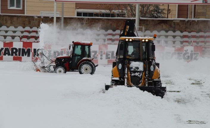 Misli.com 3. Lig 1. Grup müsabakasında Gazi Stadyumu’nda Nevşehir Belediyespor, Karadeniz temsilcisi Ofspor ile karşılaşacak. Maç öncesinde yoğun kar yağışı sebebiyle Gazi Stadyumu’nun zemini karla kaplanırken mücadelenin hakemi, karşılaşmayı başlatamadı. Maçın orta hakemi Cihan Ölmez’in ’Maçı oynatacağım’ demesinin ardından sahaya kepçe ve greyderler girdi. Gazi Stadyumu’nda maçın orta hakeminin maçı oynatma isteği sonrasında kepçe ve greyderlerin girdiği sahada kar temizleme çalışmaları devam etti.