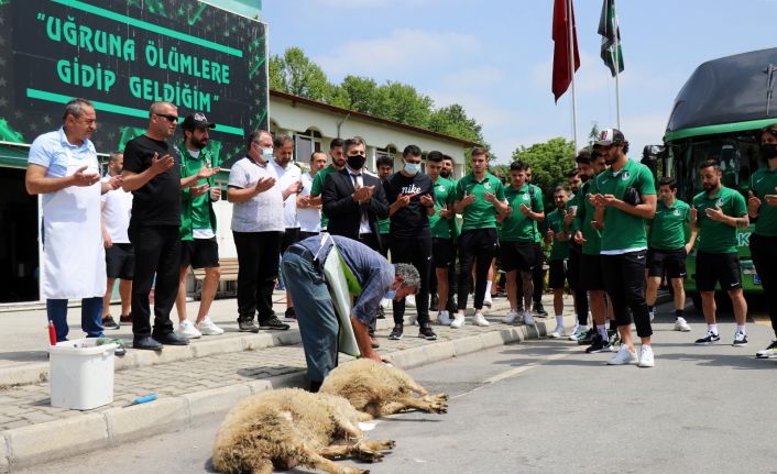 Sakaryaspor’da teknik heyet ve futbolculardan oluşan kafile, Misli.com 2. Lig Play-off Finali için İstanbul’a hareket etti. Şampiyonluk hayali ile yola çıkan takım, tesislerden kurban kesilip, dualar okunarak uğurlandı.