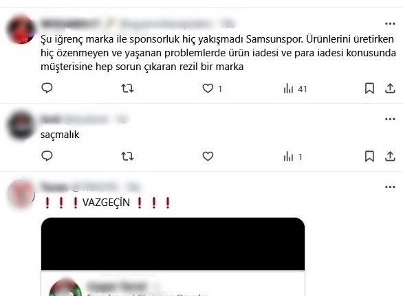 Öte yandan taraftarlar, Reeder CEO’sunun “Samsunspor artık Reeder Samsunspor. Galatasaray bir Türkiye takımı, tekrar Avrupa şampiyonu olacak bu sene. Biz de Beşiktaşlısı, Fenerlisi, Samsunsporlusu, Trabzonsporlusu 4 büyükler, Galatasaray’a ligde açacağımız büyük rekabet yarışı ile tekrar Avrupa şampiyonluğu için hazır tutacağız. Türk futboluna hayırlı olsun” açıklamasına da taraftarlar yoğun tepki gösterdi.