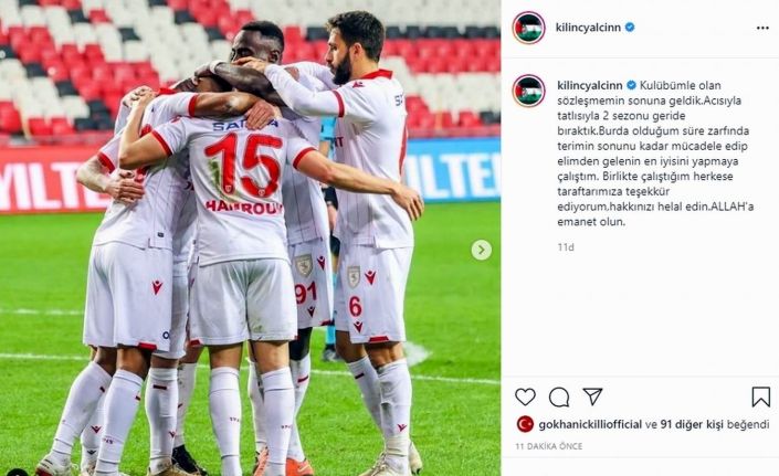 “Kulübümle olan sözleşmemin sonuna geldik. Acısıyla tatlısıyla 2 sezonu geride bıraktık. Burada olduğum süre zarfında terimin sonunu kadar mücadele edip elimden gelenin en iyisini yapmaya çalıştım. Birlikte çalıştığım herkese, taraftarımıza teşekkür ediyorum, Hakkınızı helal edin. Allah’a emanet olun.”