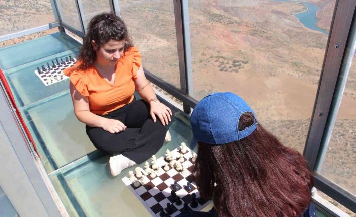 Siirt’in Tillo ilçesinde bulunan 1300 rakımlı Kaletül Üstad Tepesi’ndeki Tillo Tabiat Parkı cam terası, çocukların sokak satrancına ev sahipliği yaptı.