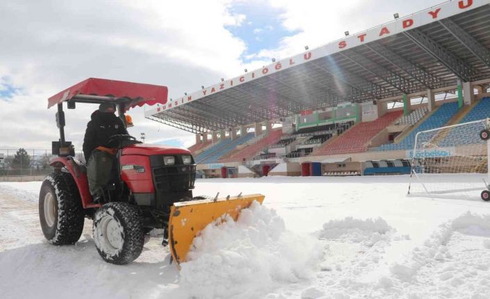 Sivas Belediyespor ile Serik Belediyespor’un mücadelesine ev sahipliği yapacak olan Sivas Muhsin Yazıcıoğlu Stadyumu, tamamen karla kaplandı. Sivas Belediyesi Spor İşleri Müdürlüğü saha bakım personeli, Gençlik ve Spor Hizmetleri İl Müdürlüğünün ekipman ve personelleri stadyumda kar temizleme çalışmasına başladı.