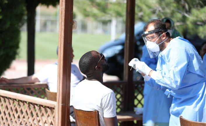 Sivas İl Sağlık Müdürlüğü’nden Vali Lütfullah Bilgin Sivasspor Tesisleri’ne gelen ekip, 19 Temmuz Pazar günü sahasında oynayacağı Gençlerbirliği maçı öncesi Sivasspor A takım futbolcularına, teknik heyete, destek ekibe ve tüm personele 12. kez korona virüs testi yaptı.