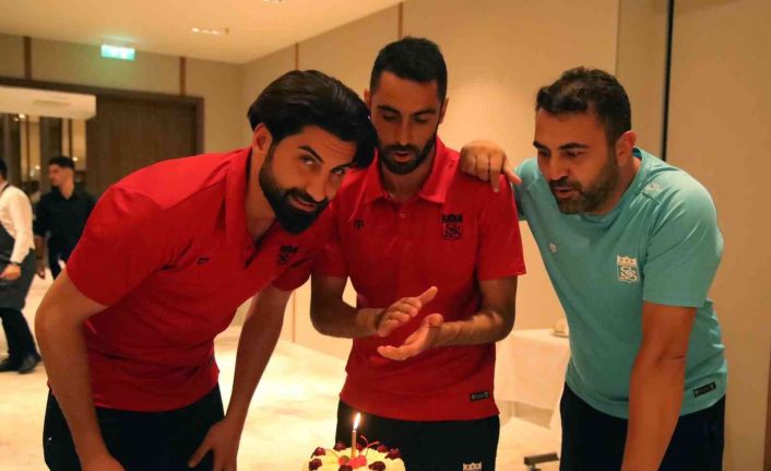 UEFA Avrupa Konferans Ligi’nde CFR Cluj ile oynayacağı maç için Romanya’da bulunan Sivasspor’da kaleci Muammer Yıldırım için akşam yemeğinin ardından sürpriz bir organizasyon düzenlendi. Muammer, kendisi için hazırlanan doğum günü pastasını üfledi ve takım arkadaşlarının tebriklerini kabul etti.